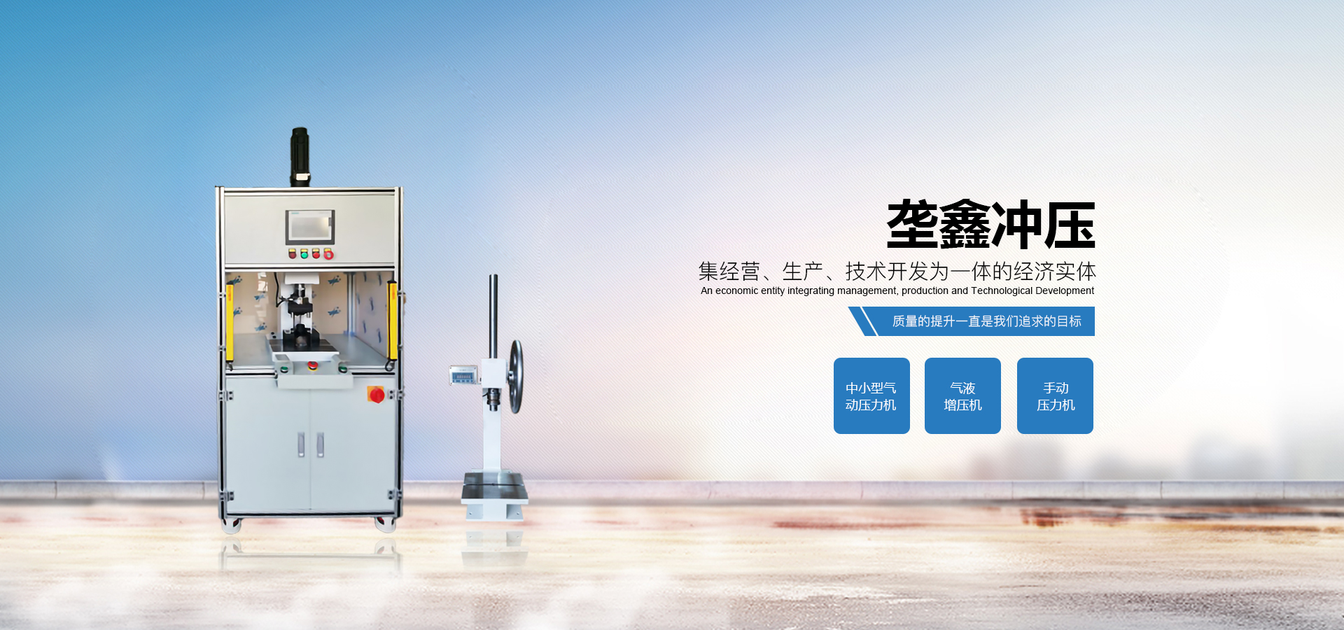 煙臺壟鑫沖壓設(shè)備有限公司是集經(jīng)營、生產(chǎn)、技術(shù)開發(fā)為一體的經(jīng)濟實體,專業(yè)致力于中小型壓力機、非標(biāo)壓力機的設(shè)計開發(fā)和制造。在引進德國、日本等國家先進的鉚壓控制技術(shù)及機器設(shè)計理念的基礎(chǔ)上,結(jié)合相關(guān)行業(yè)的實際需要,開發(fā)出各種臺式、落地式氣動壓力機、手動壓力機、氣液增壓機、氣液增力缸、旋鉚機、無鉚釘鉚接機等鉚接設(shè)備。產(chǎn)品應(yīng)用領(lǐng)域廣泛,適用于汽車零件、電子、電器、家電、包裝、五金、等行業(yè)。公司視質(zhì)量為生命,并一貫遵循對每一臺產(chǎn)品負(fù)責(zé),對每一位用戶負(fù)責(zé),真誠為您服務(wù)。 自公司成立以來,秉承“誠信,創(chuàng)新,專業(yè)”的經(jīng)營理念,以優(yōu)質(zhì)的產(chǎn)品,完善的售后服務(wù),樹立良好的品牌形象,服務(wù)于廣大新老顧客。我們竭誠于各位同仁攜手并進,共謀發(fā)展。